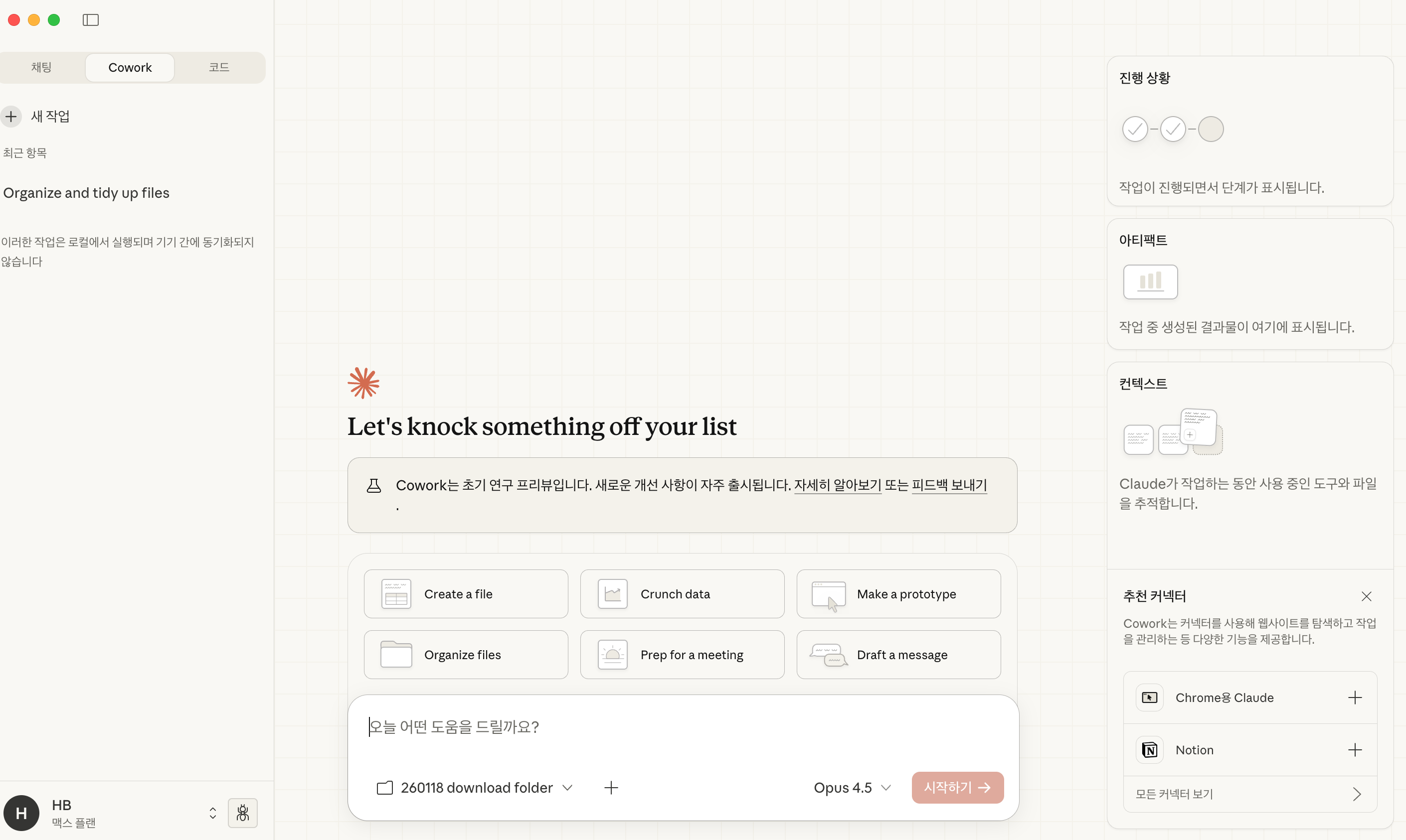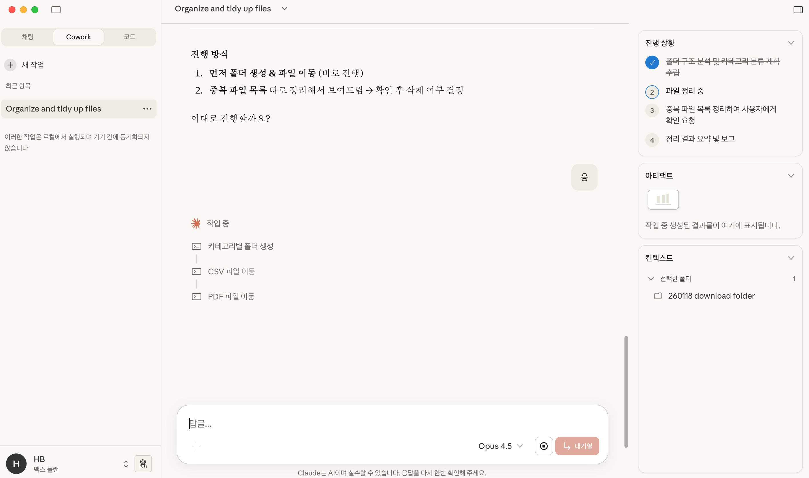 클로드 코워크가 새로 나와서 마침 max 요금제도 결제한 김에 폴더 정리부터 테스트해보기로 했다.